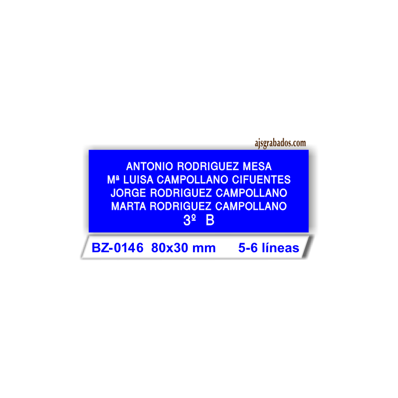 BZ-0146 aluminio anodizado azul adhesiva, medida 80x30 mm grueso 0,6 grabada a