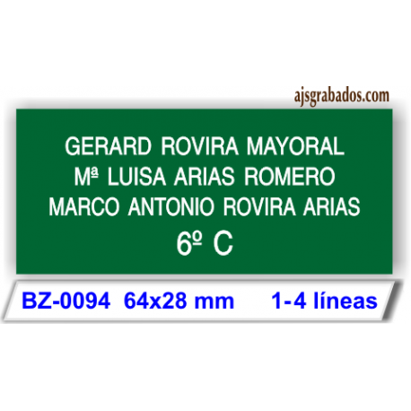 BZ-0094 aluminio lacado verde adhesiva, medida 68x24 mm grueso 0,7 grabada