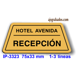 IP-3303 placa de solapa para identificación en acrílico oro satinado,medida 70x35 mm grueso 1,5 grabada en bajo relieve letra y orla negra,con imperdible en la parte posterior,...