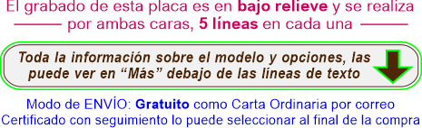 bajo relieve, color texto y orla según modelo, con anilla, incluye de 1 a 5 líneas