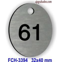 FCH-3394 ACRÍLICO plata pincelado de 32x40 mm grueso 1,5, grabado bajo relieve letra negra, modelo para 1 a 4 caracteres. En las líneas de texto de personalización escriba los números que necesita, si no son correlativos sepárelas con una coma ej. 12, 65, 95, etc. Finalice en este orden: pulse GUARDAR para unir el texto al pedido, seleccione color, precio según cantidad y añádalo al carrito