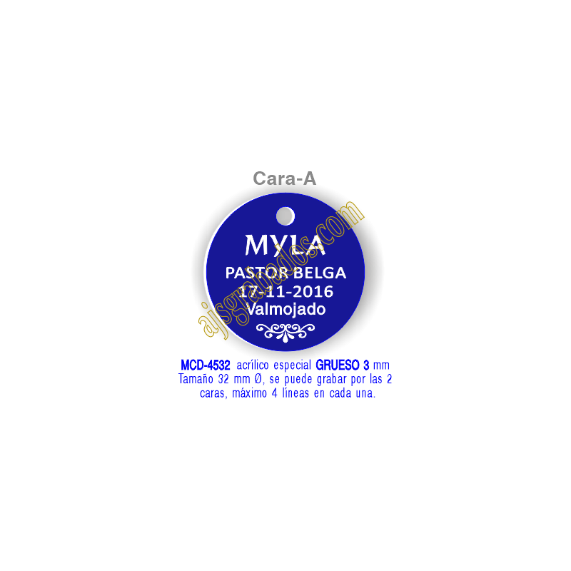 con anilla. Grabado: bajo relieve por las dos caras, incluye de 1 a 4 líneas de texto